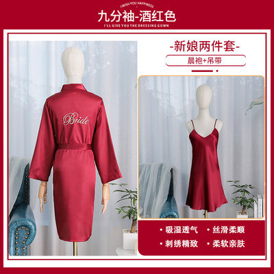 Wedding morning gown, female bride, bridesmaid, makeup, gift, wedding photo, long-sleeved pajamas, ice silk, large size nightgown, nightdress