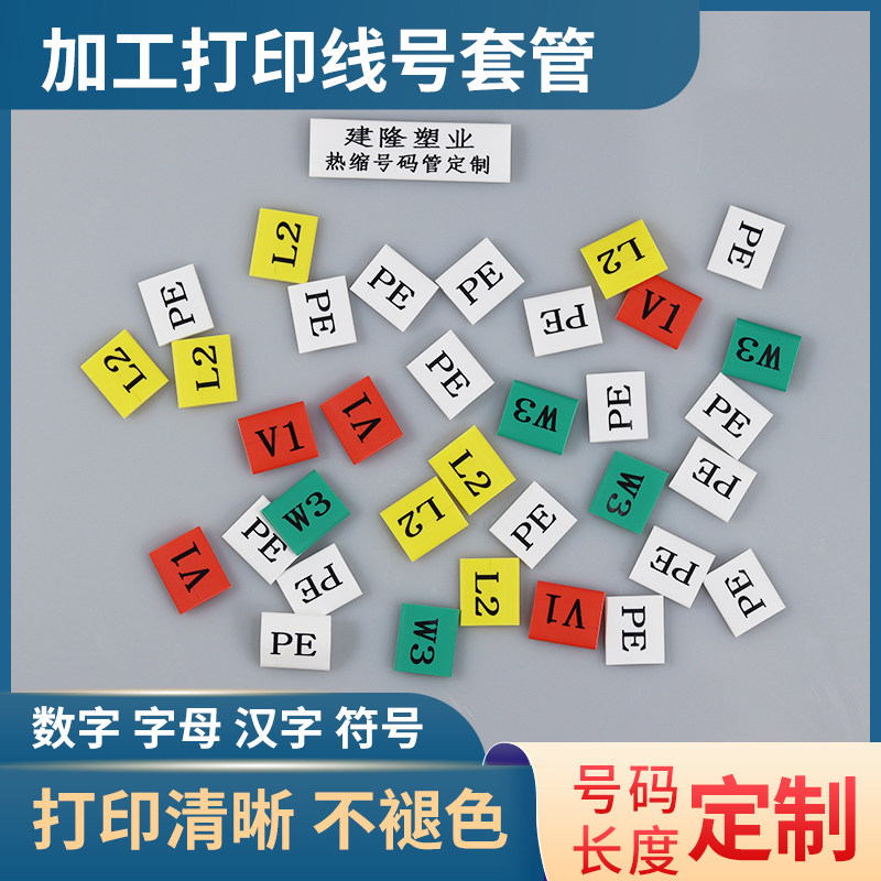 Processing custom printing heat shrinkable number tube U V W cable line number tube identification plum blossom sleeve 1-70mm wire harness