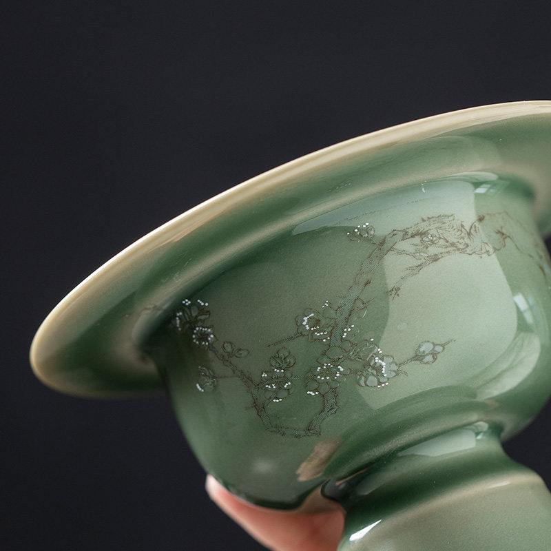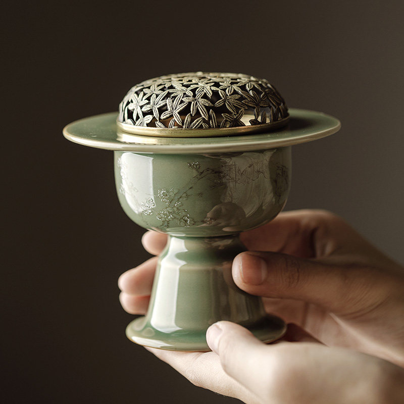 House of Shemy Yiji Yuanyi Kiln Plum Green Incense Stove Suit Bronze Cover Zen of Incense Burner Incense base Incense Burner accessories Home