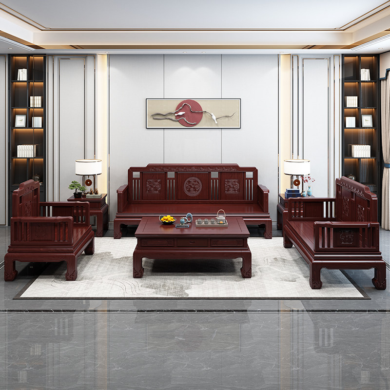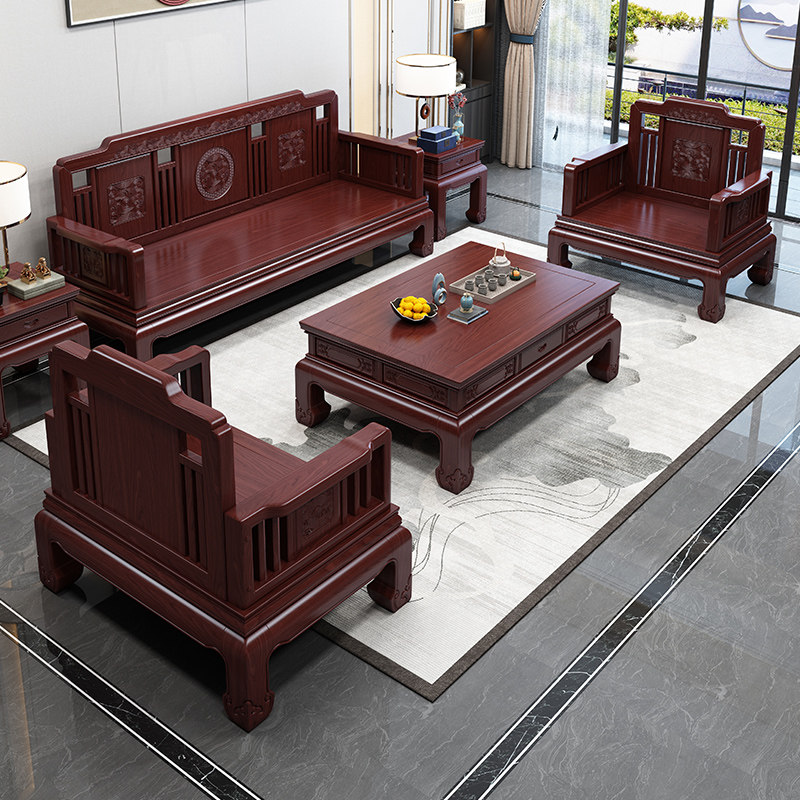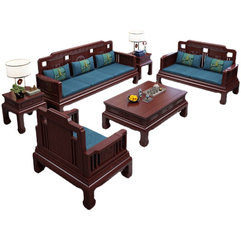 New Chinese style sofa rosewood sour branch color all solid wood living room small apartment carved imitation classical mahogany furniture combination