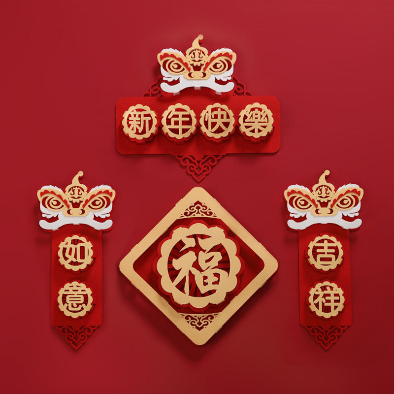 Luxurious nine-piece set (Five blessings at the door) Deluxe nine-piece set (family happiness) Four-character lion dance set (Great auspiciousness - look up to see happiness) Two-character lion awakening set (great auspiciousness - auspicious - such as