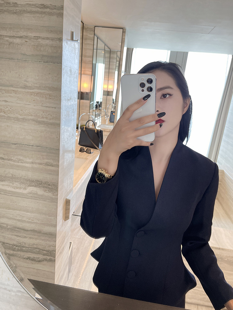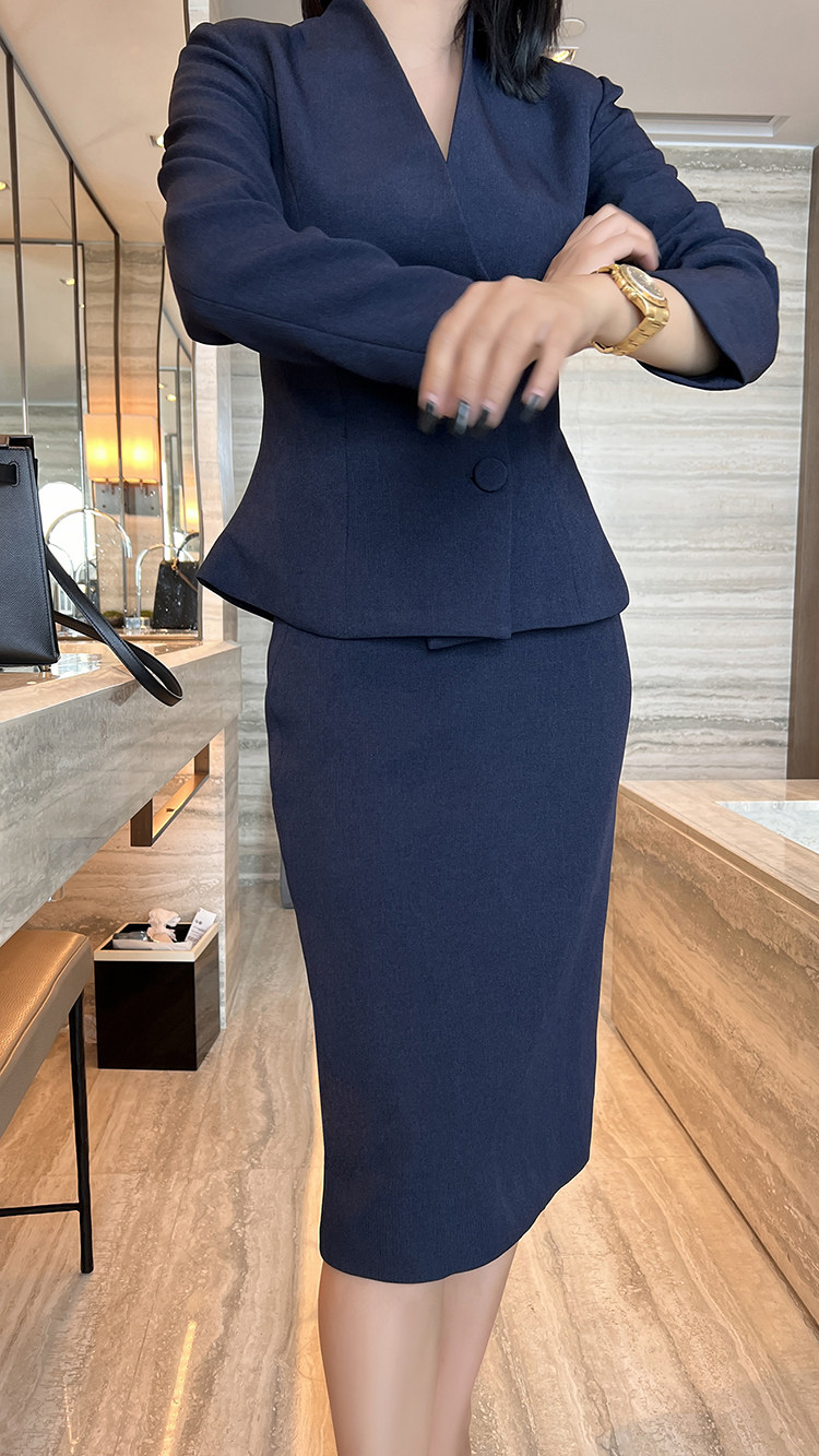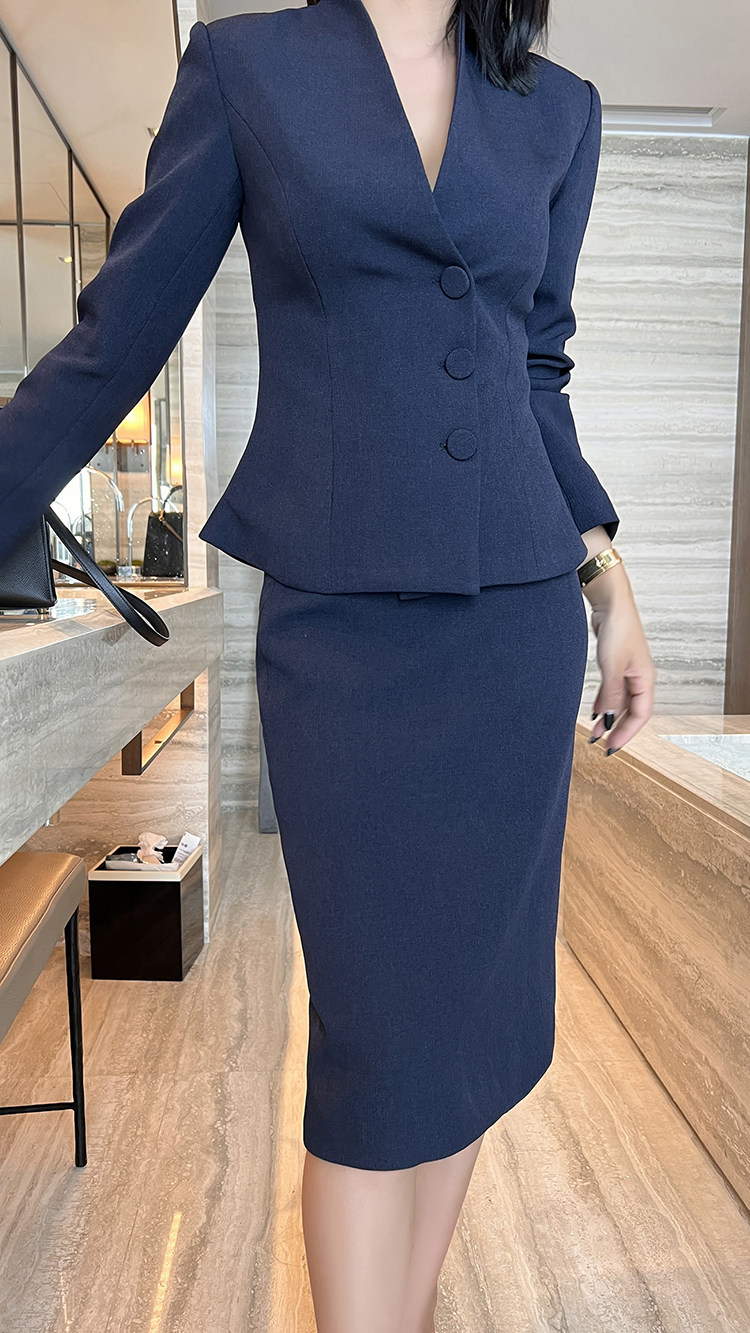 Blue suit woman Two sets to work in workplace Commuter Dress Halfbody Dress Design Feeling small, light cooked autumn and winter suits