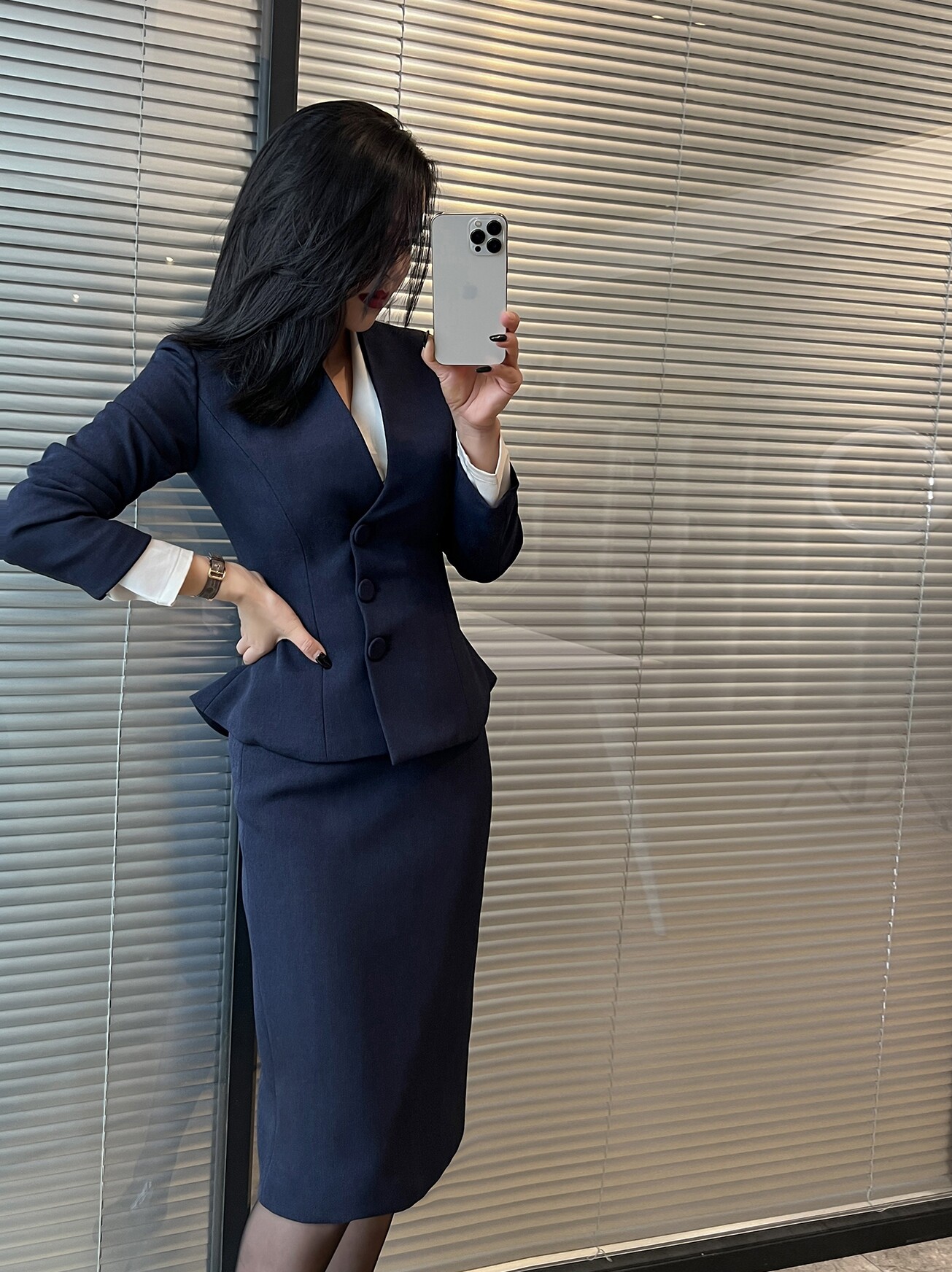 Dark blue jacket dark blue half skirt