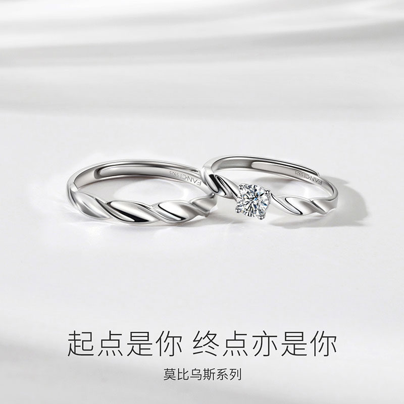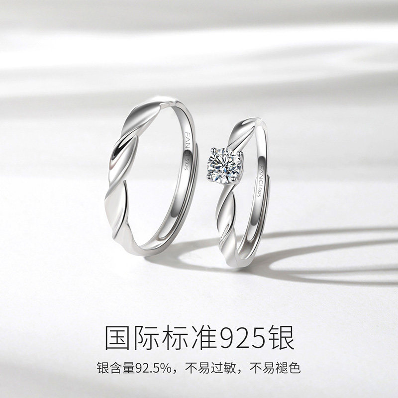 Fanci Fan Qi silver decorated sparkling galactic couple money for ring fashion wedding ring Christmas gifts to girlfriend-Taobao