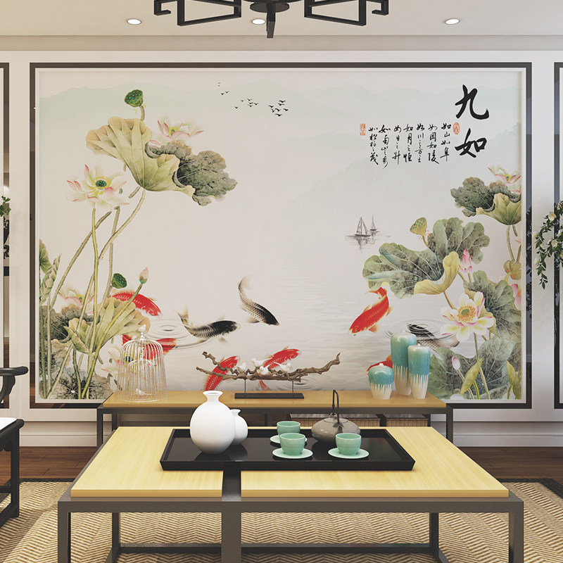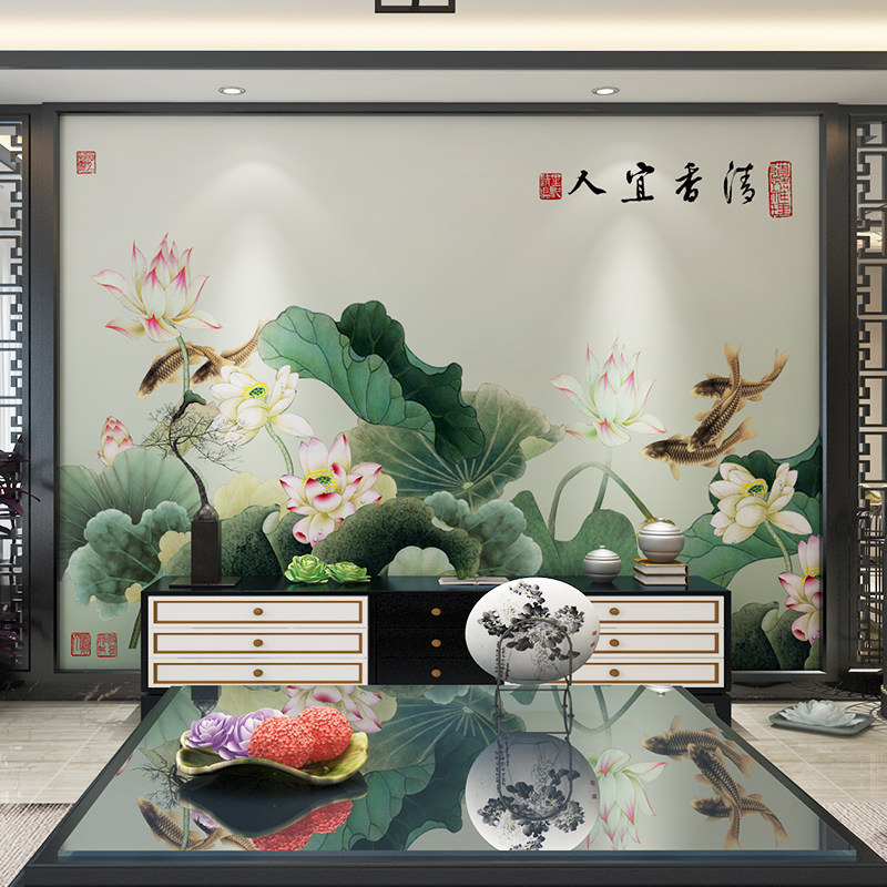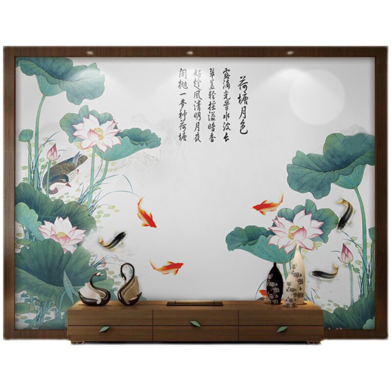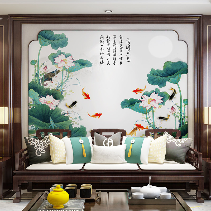 3D lotus Chinese bamboo and wood fiber environmental protection TV background integrated wall panel art hand-painted sofa film and television siding