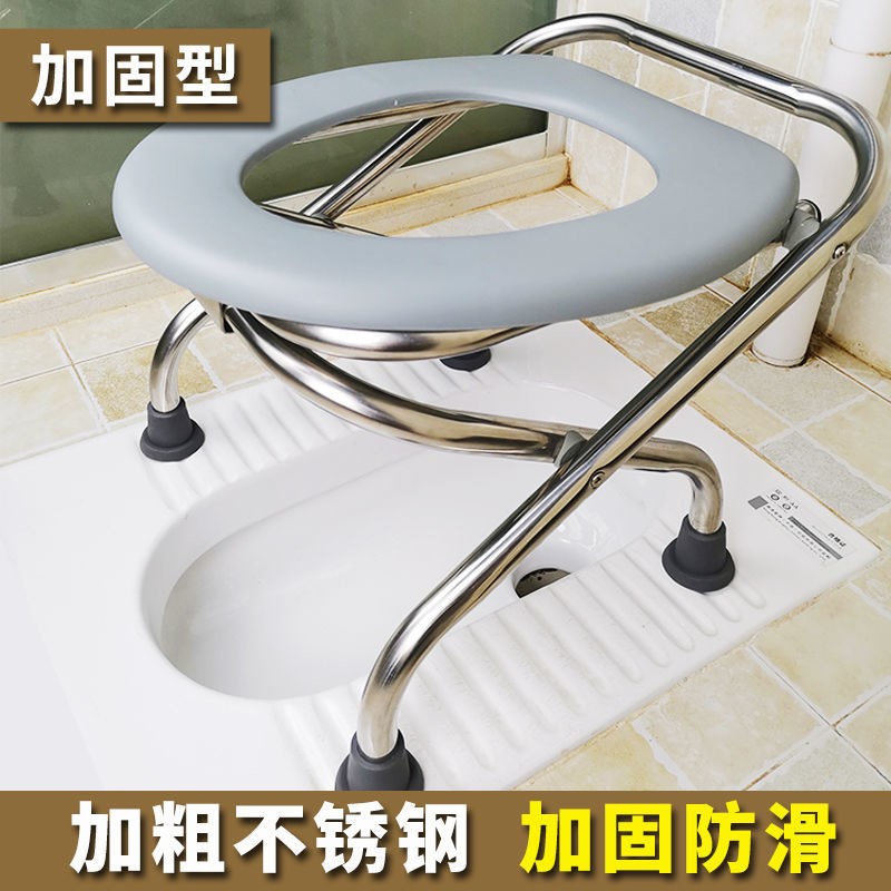 Toilet chair reinforced non-slip household toilet for the elderly, foldable portable, convenient and sturdy toilet for rural use
