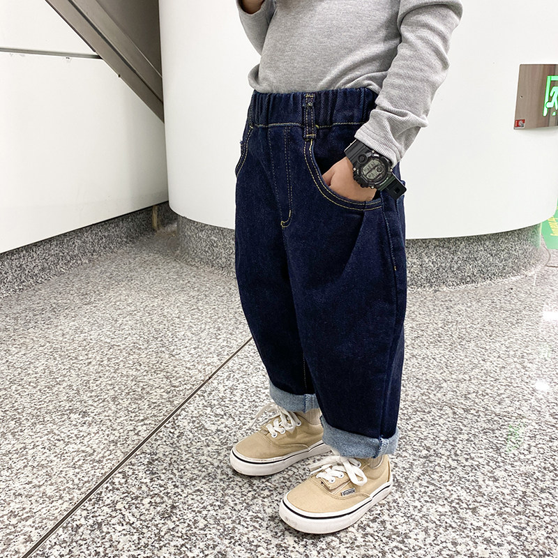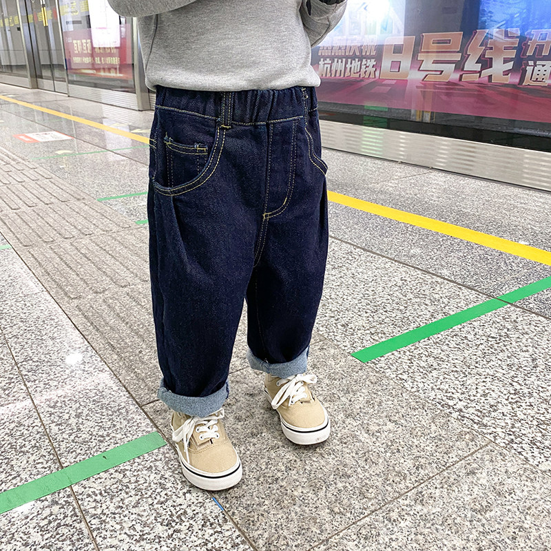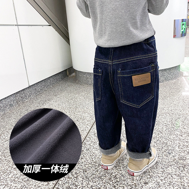 Children's pants, children's clothing, winter clothing, boys' jeans, plus velvet, all-in-one velvet, baby's autumn and winter loose daddy pants