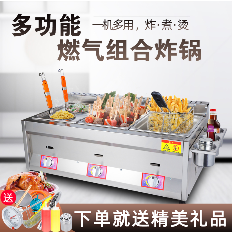 Fry Pan Commercial Pendulum Multifunction Gas Fracking Stove Hemp Hot and Thickened Stainless Steel Twin-cylinder Frying Machine