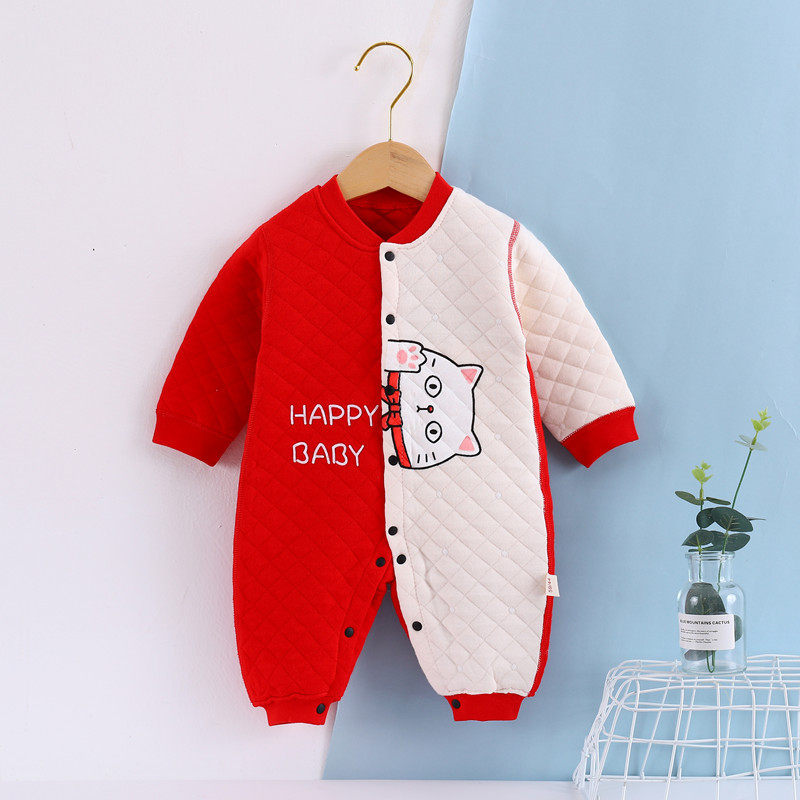 Babies warm and warm in autumn new baby jacket long sleeve and 0 - 1 year old three - story warm clothes