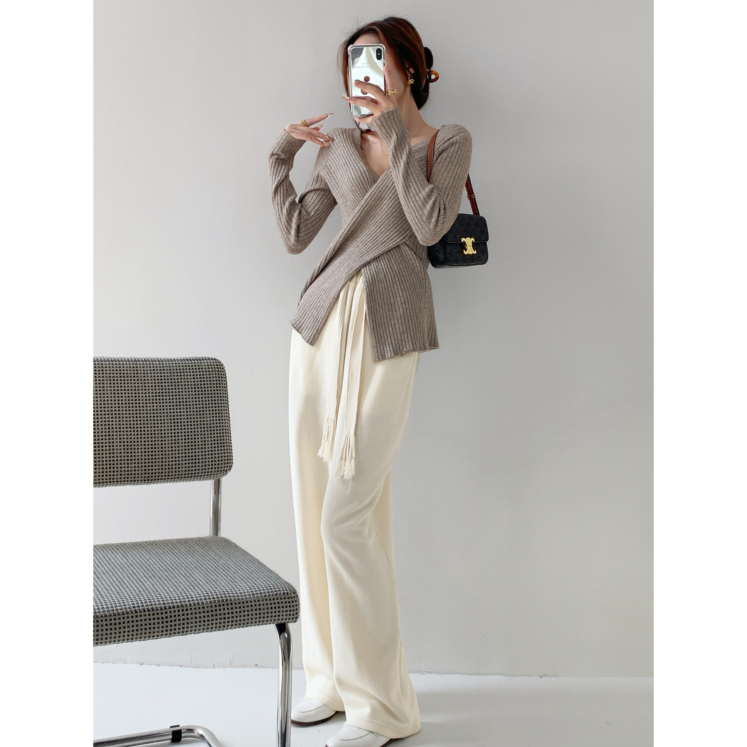 Sunset Sweetheart Milkshake White Drawstring Sports Pants Women's Spring Loose Casual Straight Wide Leg Pants High Waist Thin Mopping Pants