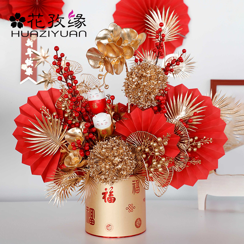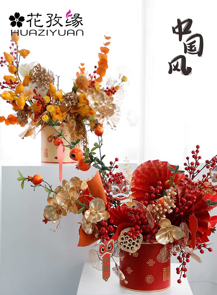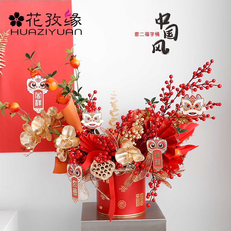 Flower packaging for New Year Futian red set two hugging bucket Chinese Winter New Year winter flower bouquet