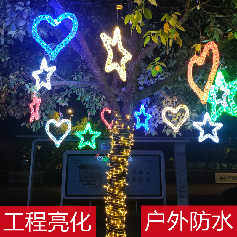 LED luminous five-pointed star modeling lamp outdoor waterproof hanging tree lantern festival lighting love-shaped decorative lamp