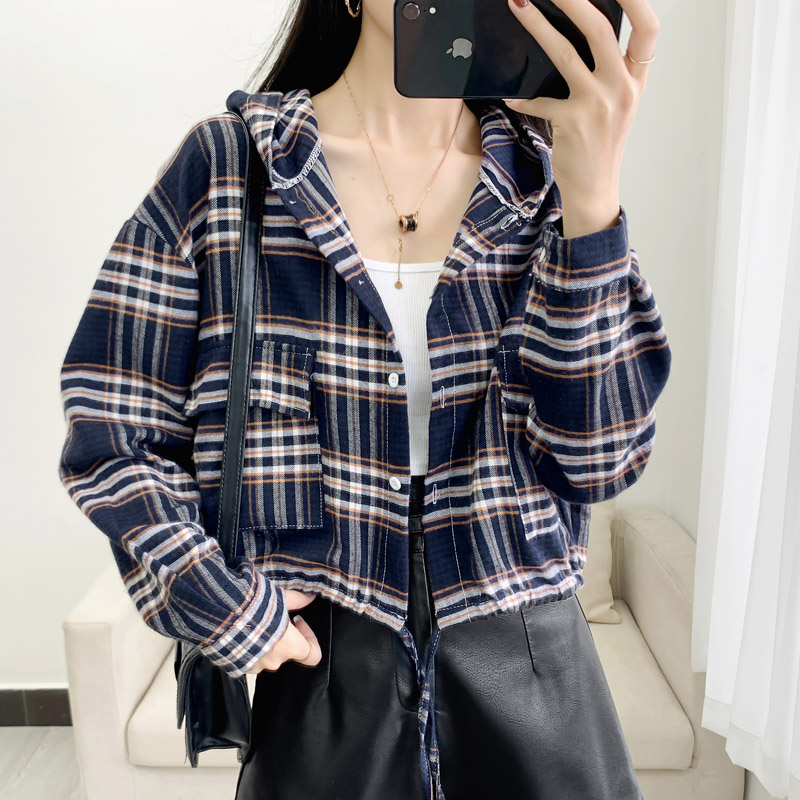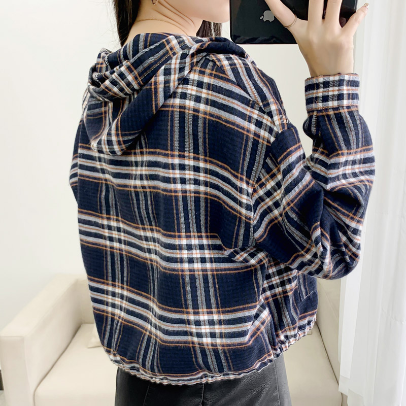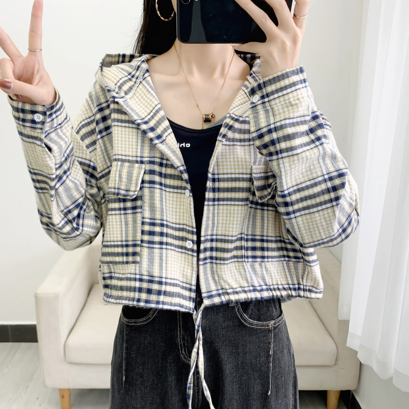 Plaid shirt woman hat 2021 spring autumn new Korean version loose 100 hitch student blouse long sleeve short jacket tide