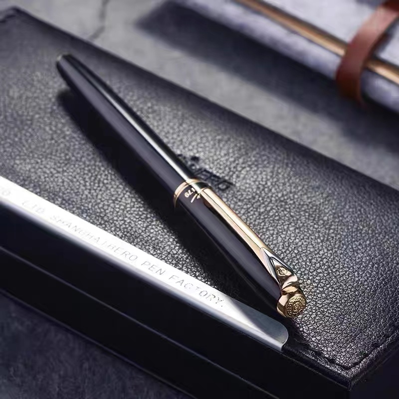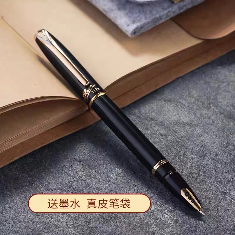 Hero pen 1179 Rongwei 10K gold pen official adult dark tip business delivery student practice calligraphy brush ink pen office high gear gift pen gift box loaded with free lettering metal