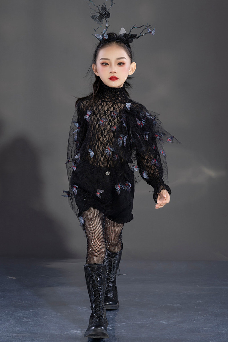 Children's model catwalk show costume black suit tide suit fashion personality girl t-table car model competition suit new