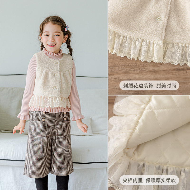 Crow girl horse winter dress 2021 new outer wear fashion vest winter girl with cotton lamb