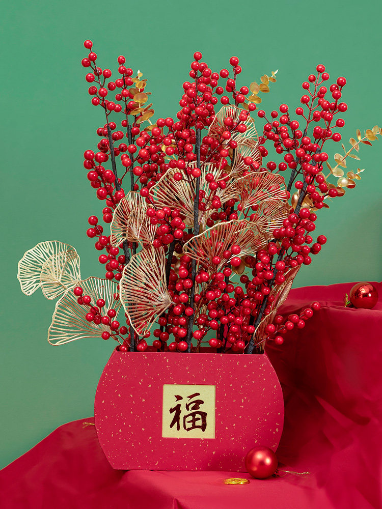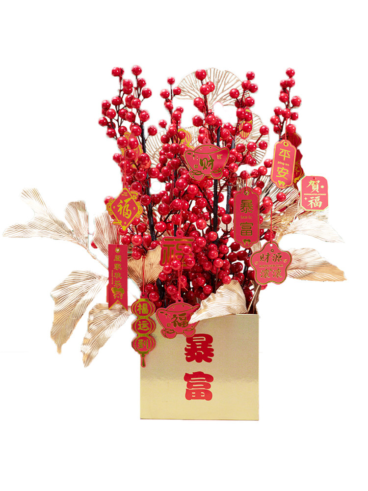 New Year's Day and New Year's blessing bucket hug bucket to make a fortune safe tree blessing word flower arrangement bucket festive New Year Spring Festival decorations ornaments