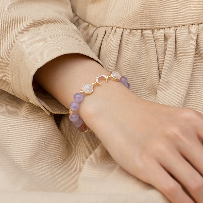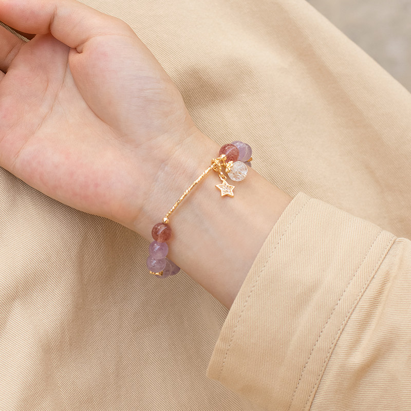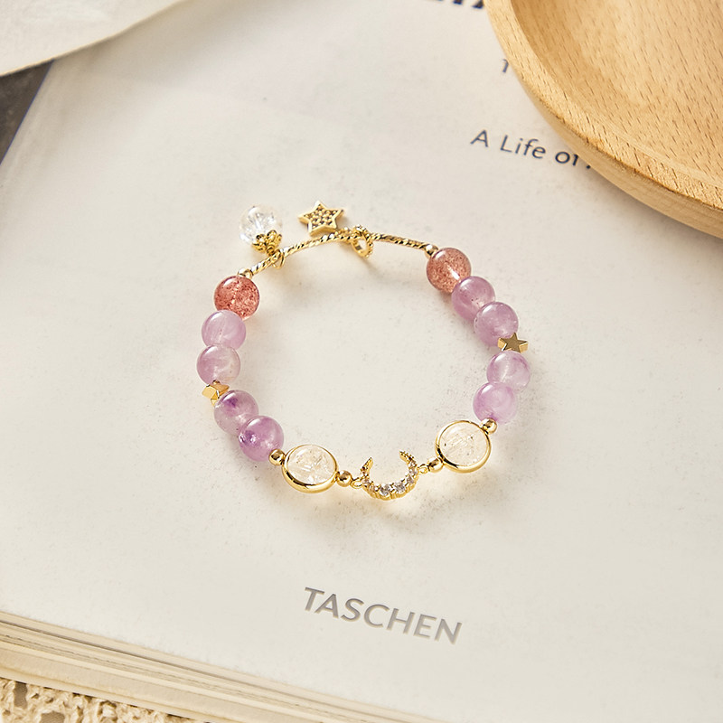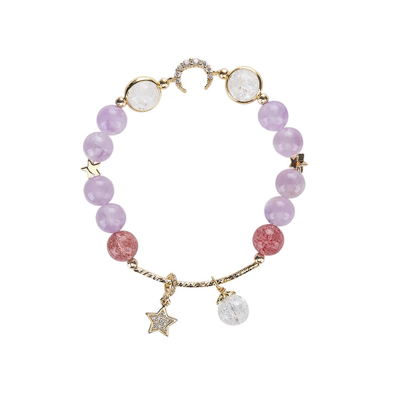 Natural Crystal Handmade Female Strawberry Crystal Purple Jade Beads String Beads Popcorn White Crystal Hand Strings Star Moon Ornaments Gifts