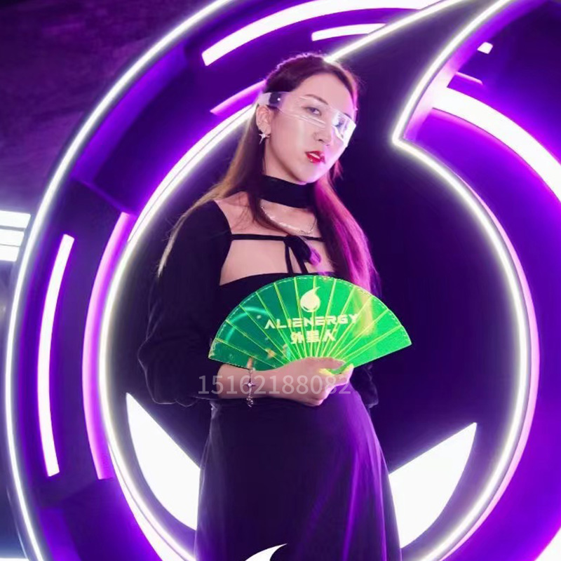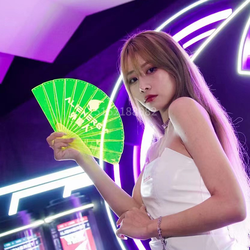 Fluorescent fan Luminous Fan Bar Trampoline Atmosphere Props Mesh Red Shake Sound Fan Charging Luminous Fan-folding fan customization