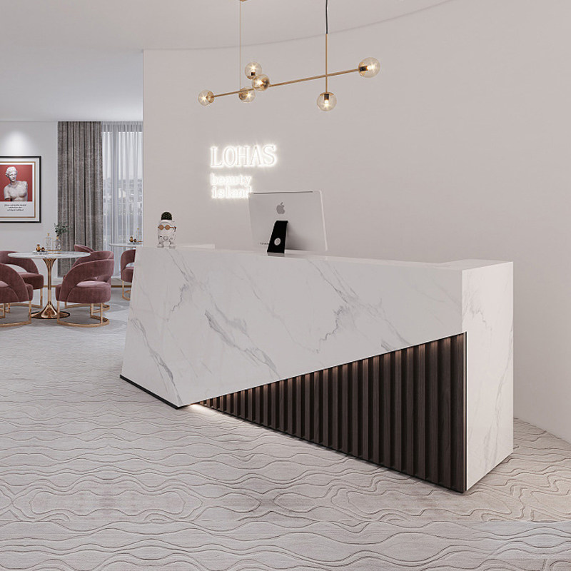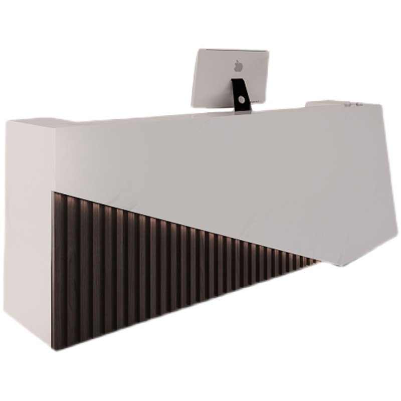 Simple high-end modern beauty salon cashier counter wood grain front desk white reception desk clothing store consultation desk customization