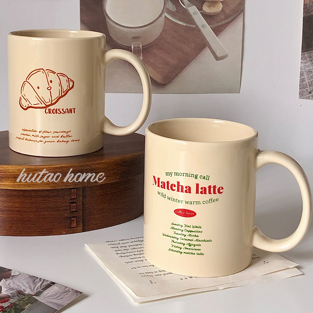 Original Homemade Ins Wind Milk Oil Color Mark Cup With Iron Cup Coffee Cup American Retro Wind Cute Hand Painted Bread