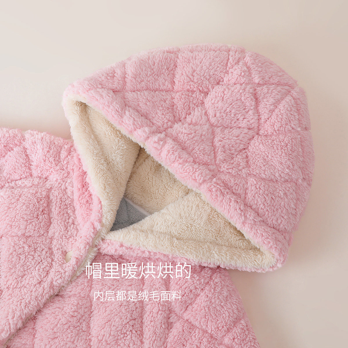 Xi Red Cation Clip Cotton Sleeping Robe-Women's Cherry Blossom Pink North Lamb Cotton Sleeping Robe-Women's Colorful Makeup Beauty Velvet Clip Cotton Sleeping Robe-Women's Grey White Textured North Lamb Jacket Cotton Sleeping Robe-Male