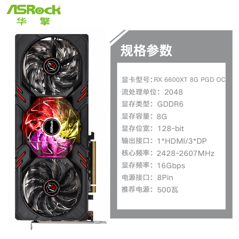 ASROCK Huengine RX6400 6500 6600 XT Challenger Phantom Electric Race Single Fan Gaming Graphics Card