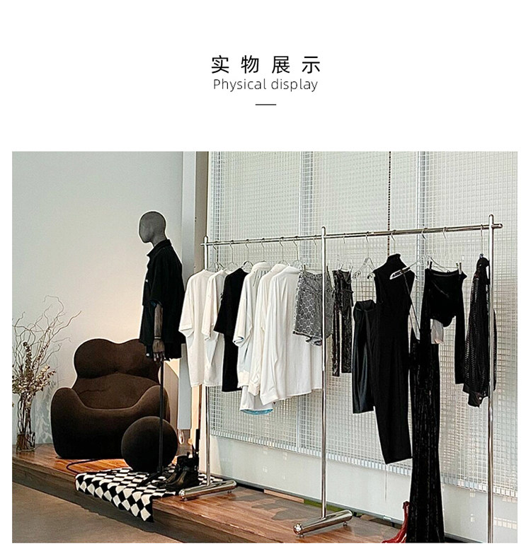 Clothing store Net red hangers stainless steel brushed silver shelves floor-standing clothes bar clothing display shelves