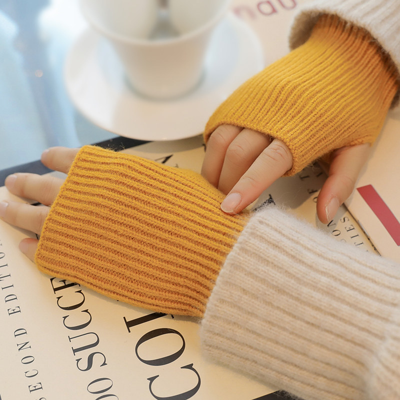 Half Finger Hair Line Gloves Women Autumn Winter Thickened Warm Dew Finger Touch Screen Knit Gloves Students Write Sleeves Cuff