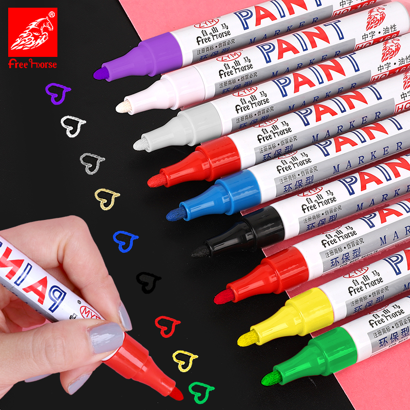 Free Horse Paint Pen White not dropping color waterproof PAINT PEN OIL PEN CAR HIGH LIGHT FINISH PAINT MACPEN STAR SIGNATURE PEN SILVER COLOR HIGH LIGHT OILY PEN FINE ART PAINTING DIY GRAFFITI COLOR PEN