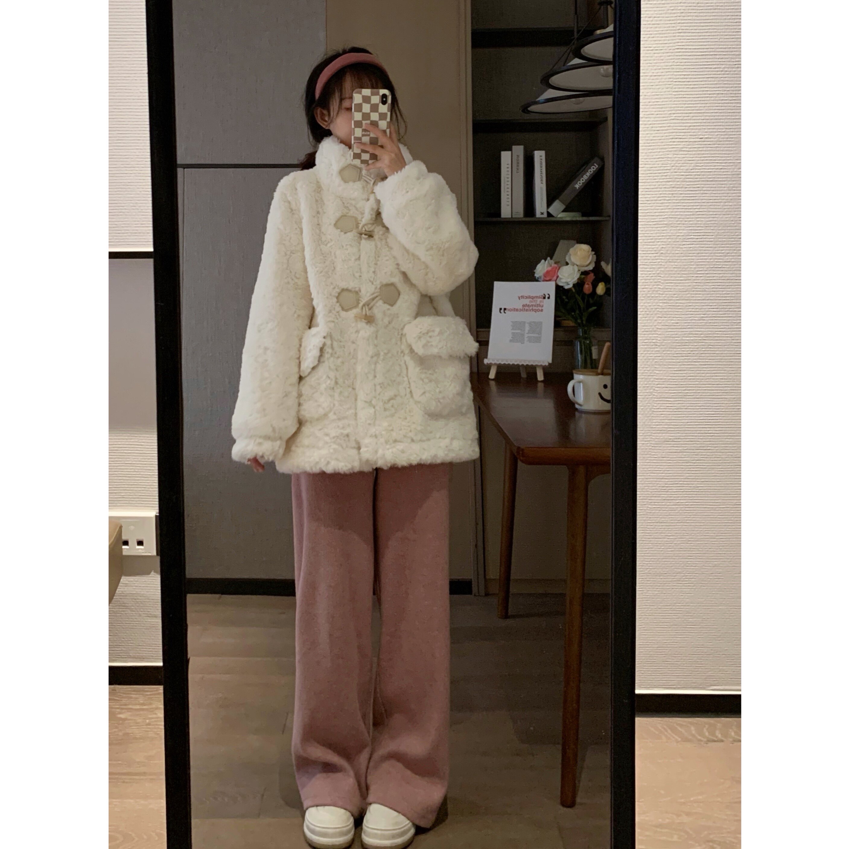 Xiaoyu MONA home high-end soft waxy lamb fluff coat female winter horn buckle thickened imitation Rex rabbit fur