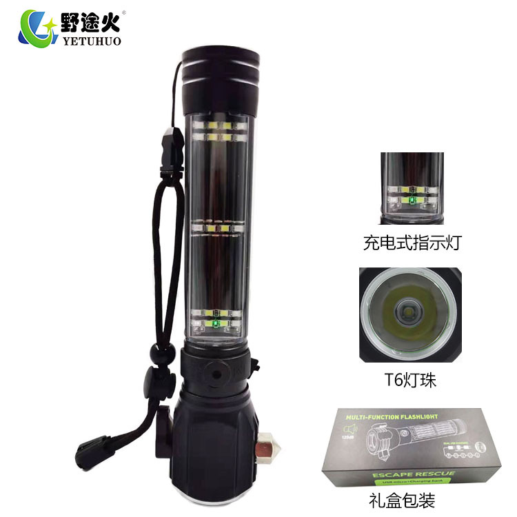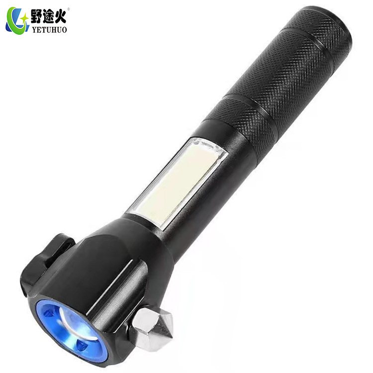 sos emergency tool light can zoom cob aluminum alloy solar flashlight LED outdoor caution escape hammer flashlight