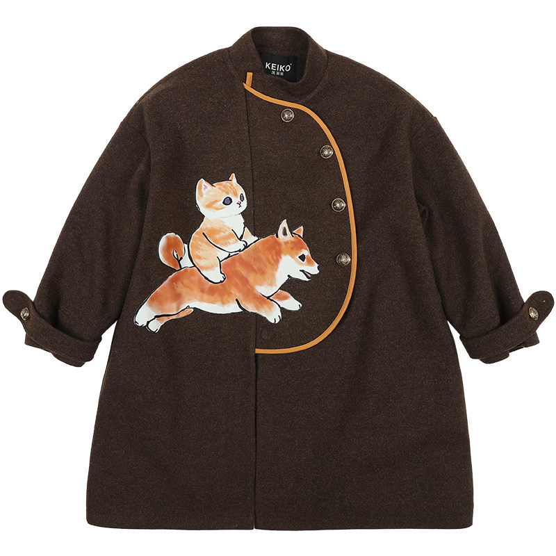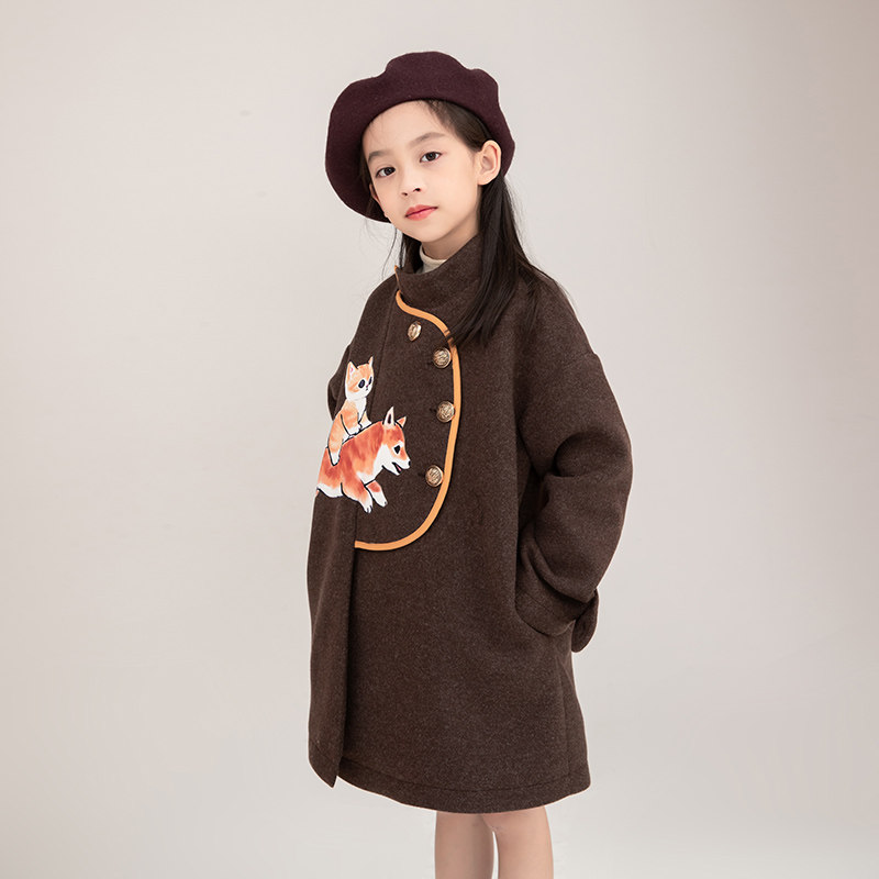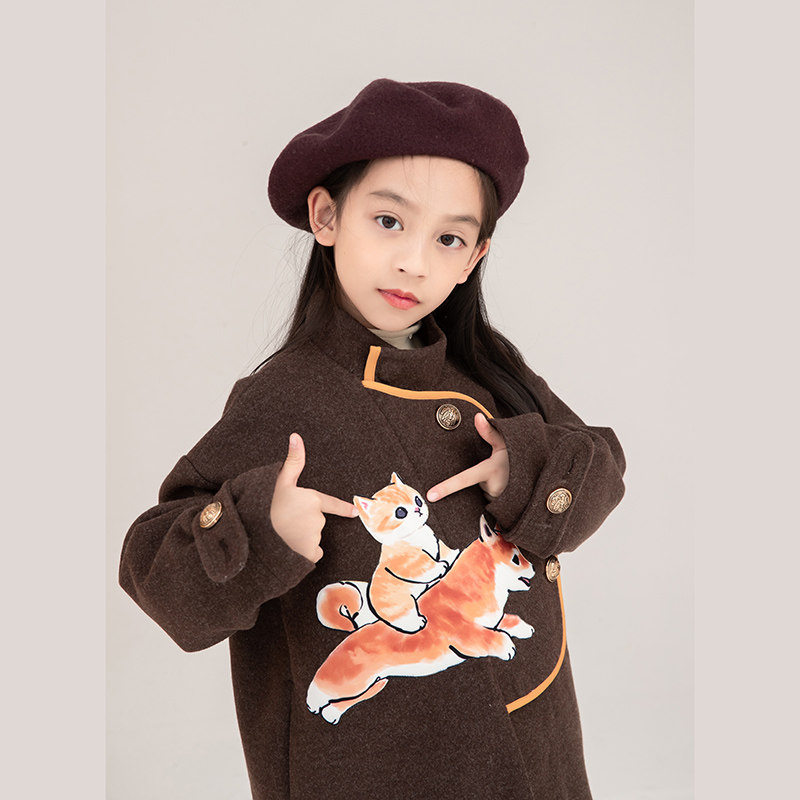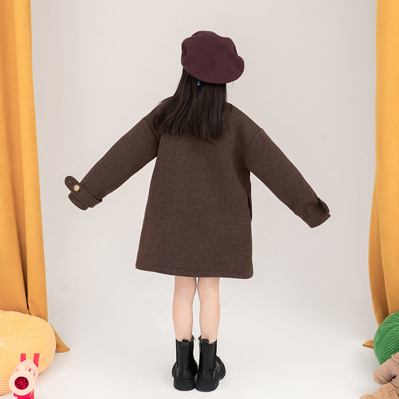 Cartoon printed Korean version Children's woolen sweater 2021 Winter New pint girl foreign pie Thickened Cotton Coat