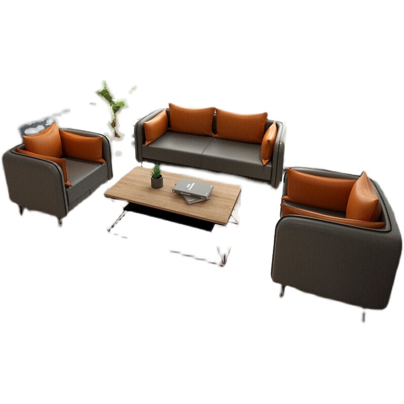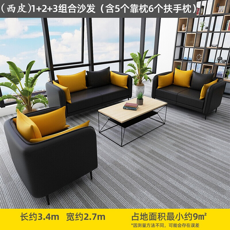 Office sofa tea couple combination package triple cow leather sofa negotiate office barber shop rest
