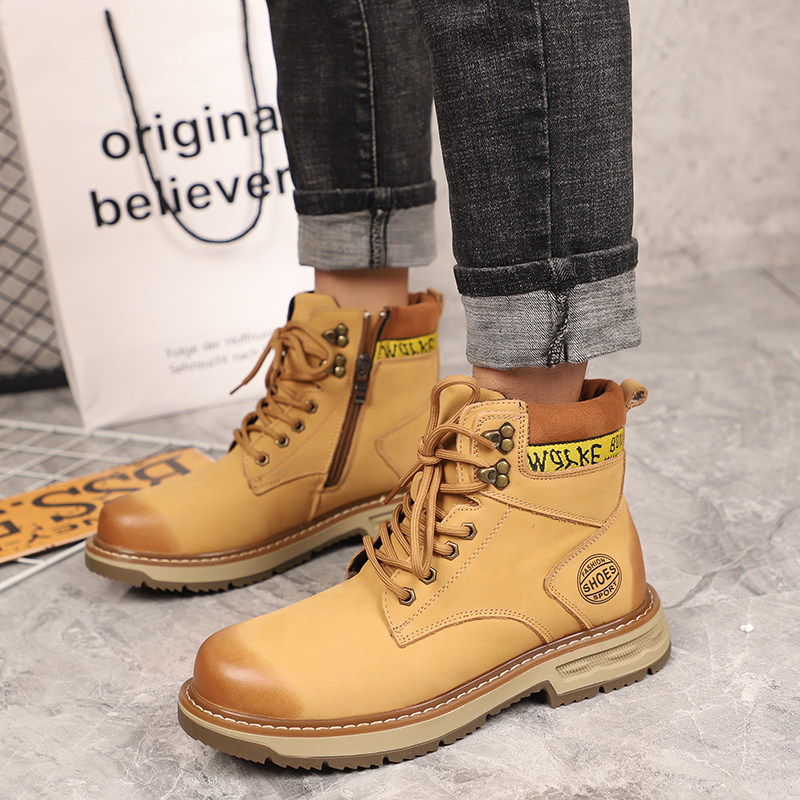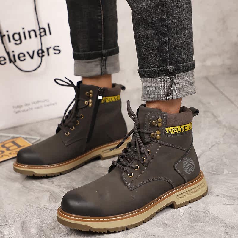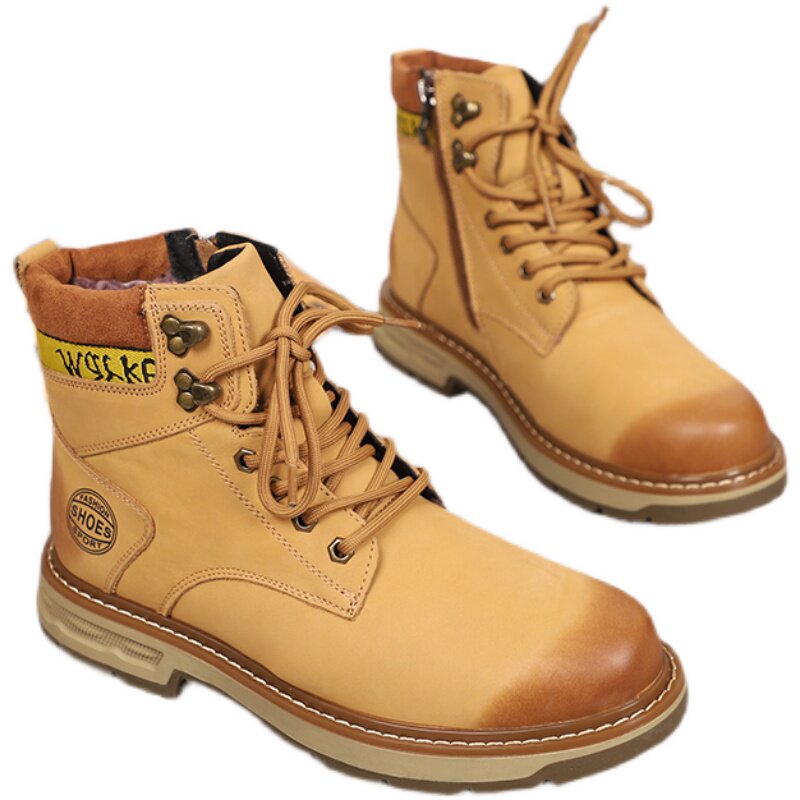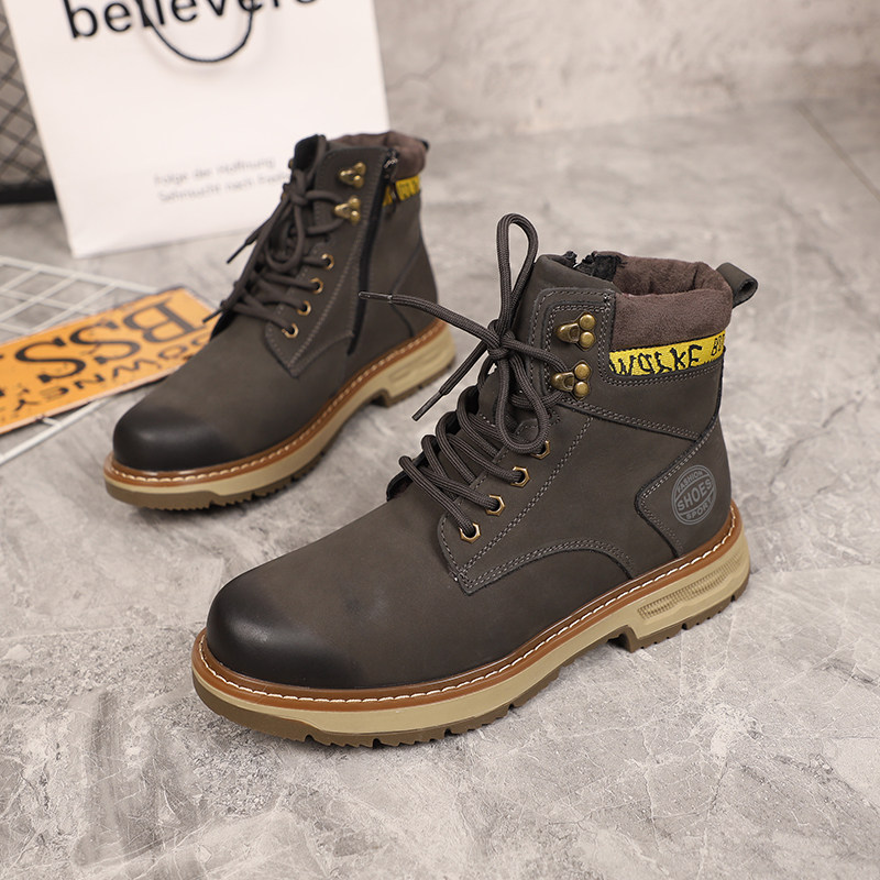 Leather shoes 2021 winter new fashion lace-up tooling rhubarb boots leather pure wool casual Martin boots