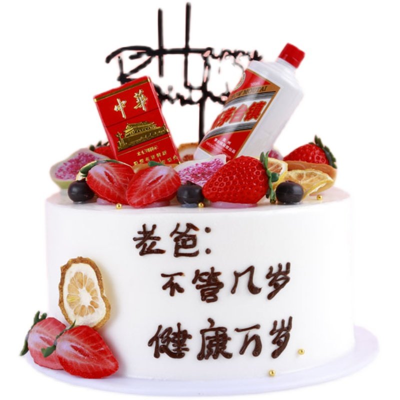 Cake Model 2022 New Mesh Red Fruits High Emulation Pop Maotai Dad Birthday Fake Cake Sample Custom
