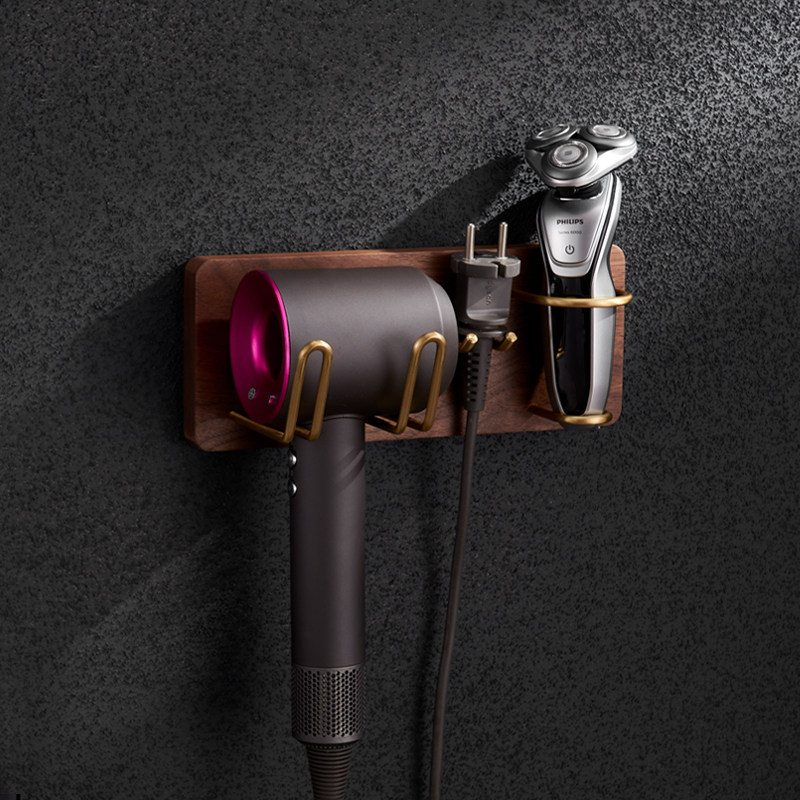 Black Walnut Hair Dryer Shelf Free Punch Hair Dryer Bracket Powder Room Hair Dryer Rack Wall Mounted Hair Dryer Rack