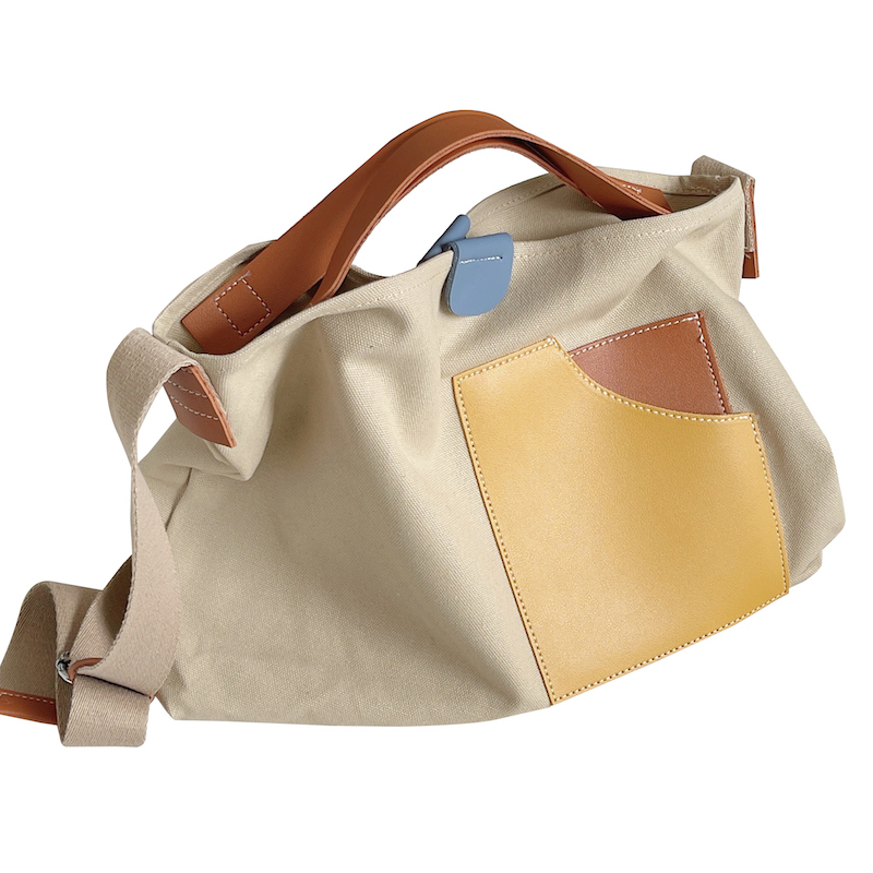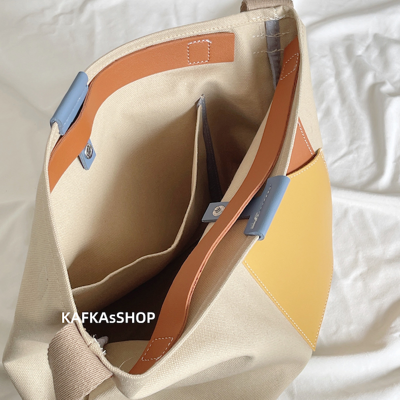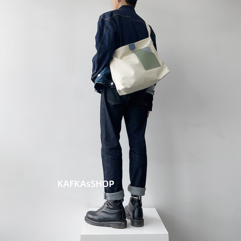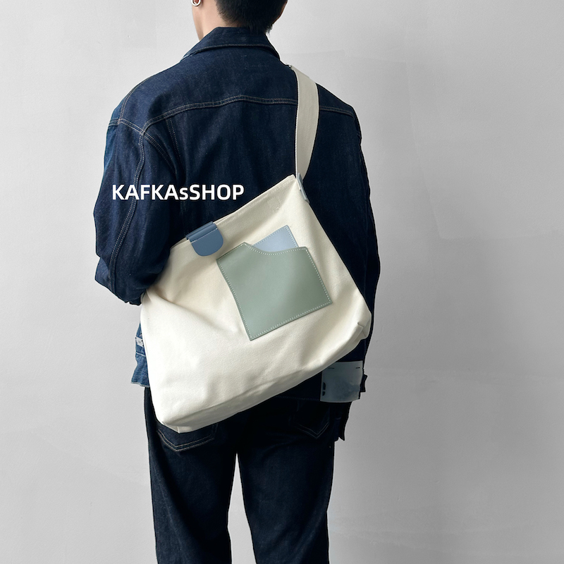 KAFKAsSHOP Contrast Color Stitching Canvas Bag Messenger One Shoulder Portable Unisex Men and Women Korean Simple Trend