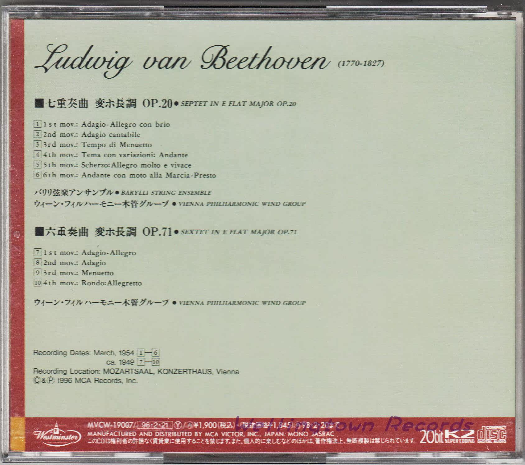Vienna Philharmonic Wind Ensemble Beethoven String Septet String Sextet W007