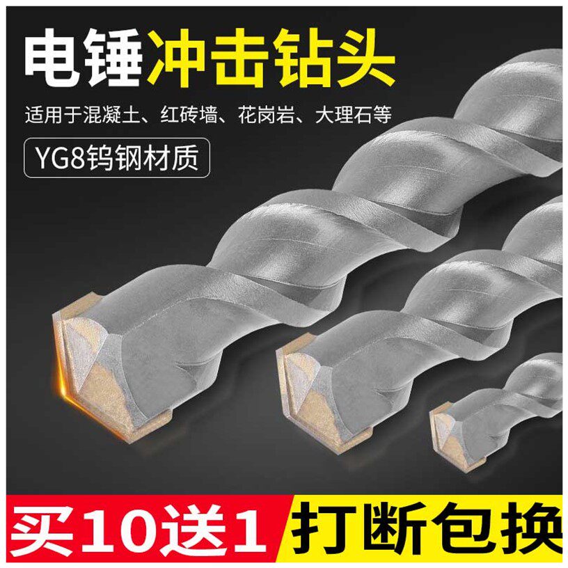 Lengthened electric hammer drill bit concrete cement wall over wall alloy perforated round shank square handle Four pit impact drill bit