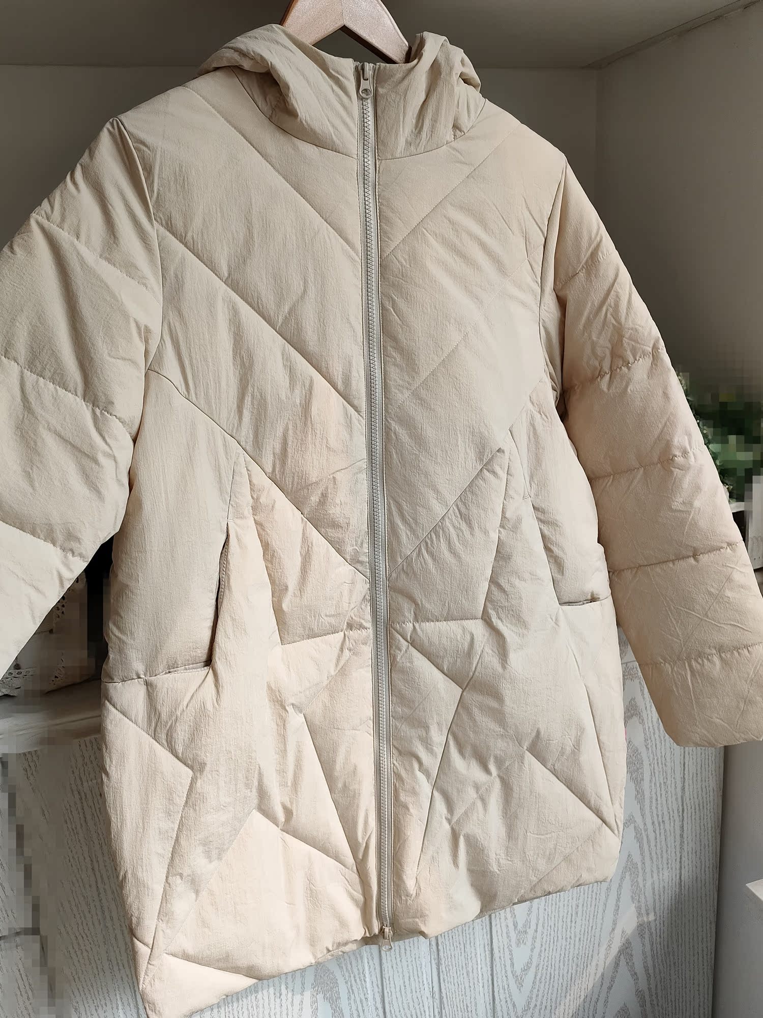 Double star hooded women's mid-length padded jacket casual warm windproof winter sports student cotton padded jacket