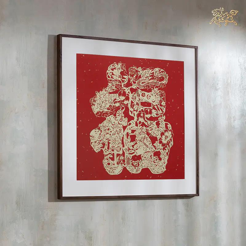 Copper master Hand-engraved Bronze carving painting "Fu No 12 Zodiac" decorative painting Xuanguan painting Hanging painting