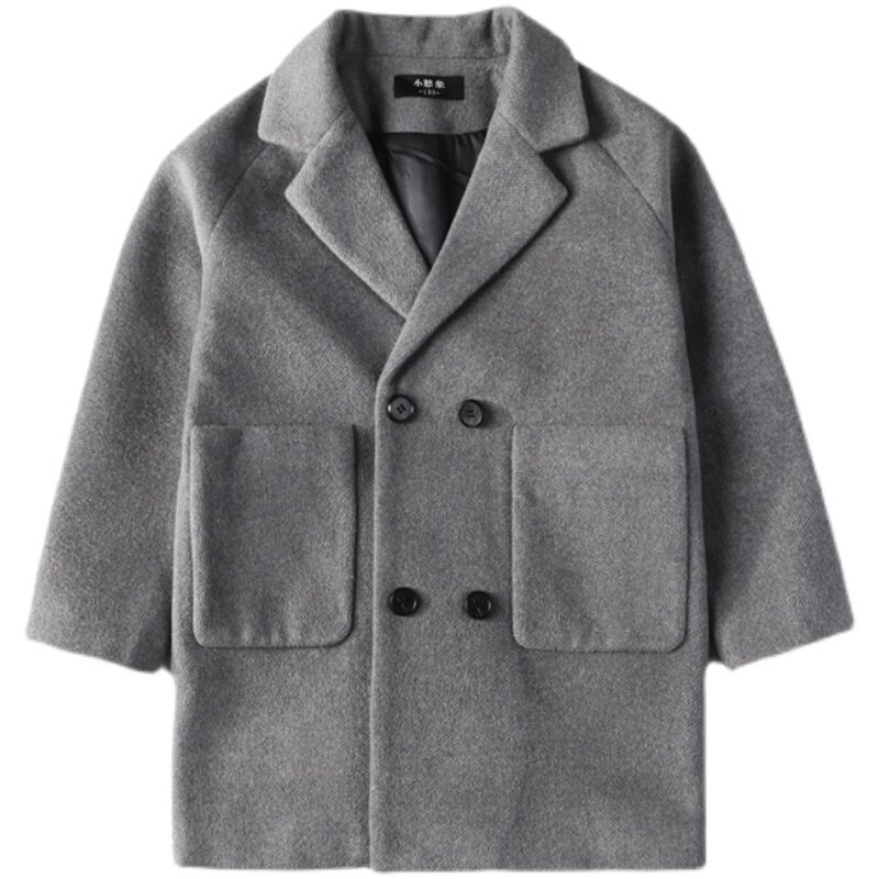 Boy's wool jacket 2021 The new foreign pie is in the middle of a long version of the children, the suit thickens CUHK children's winter clothing