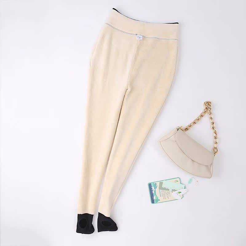 Yongchun Special Lamb Fluff Bottle Trouser thicker plus trousers in high waist double-layer one warm pants step on foot