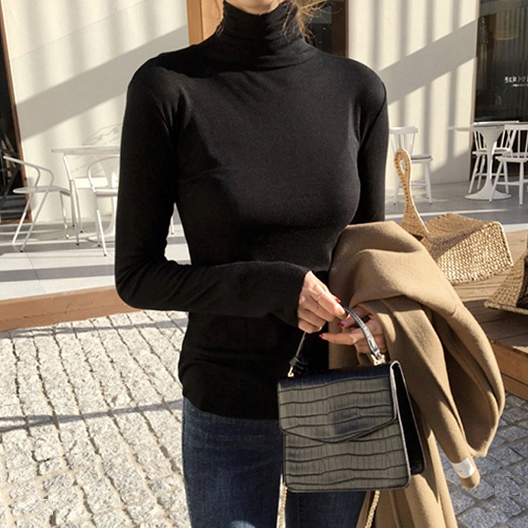 A tall collar sweater female autumn and winter plus heat warm gas repair pile collar with knitted blouse