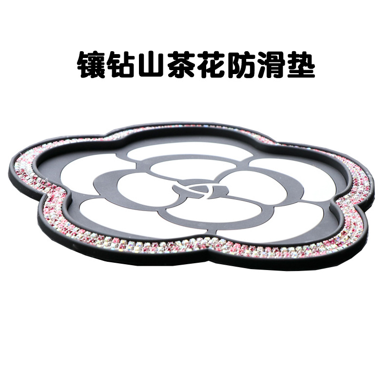 Camellia pearl anti-skid pad car instrument trolley pad car interior mobile phone decoration pad diamond-studded high temperature resistant