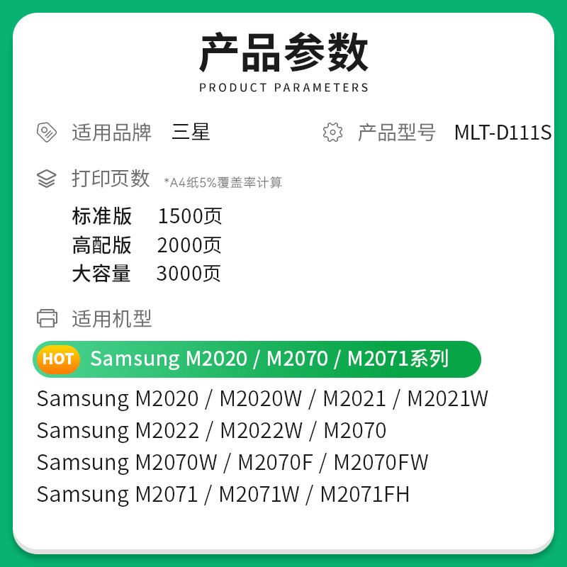Applicable Samsung m2071 Selenium Drum MLT-D111S M2070 laser printer M2020 M2020 M2021 M2022 M2022 to add powder m2071fh