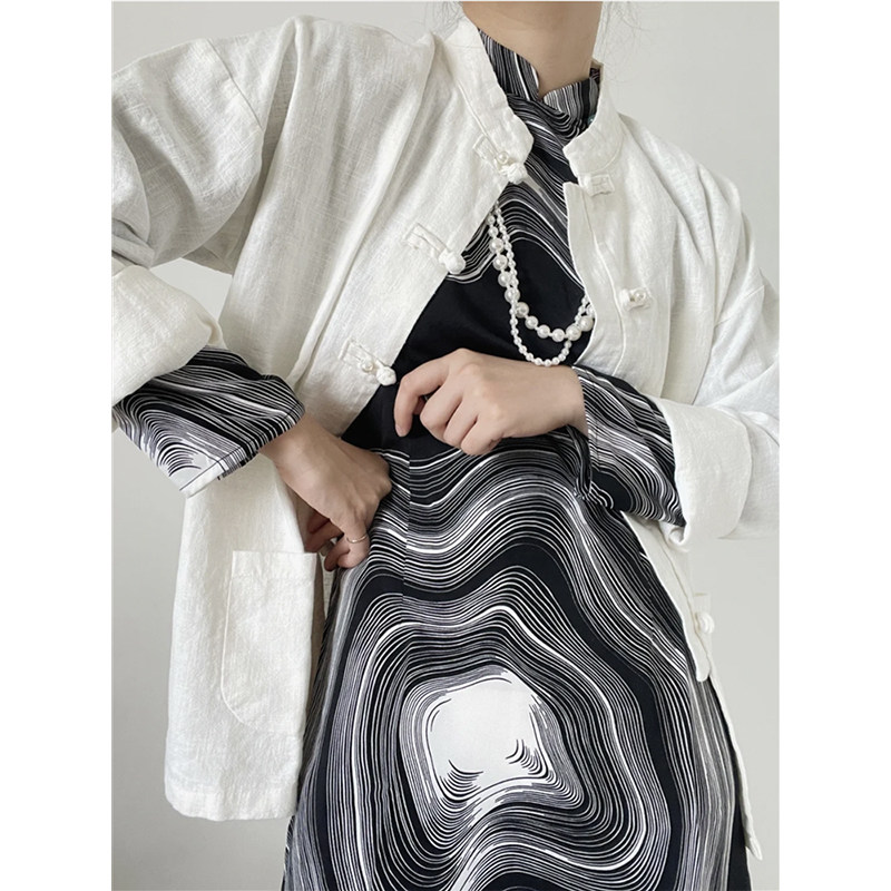 Black (irregular pattern)-------------------- 2021 new cheongsam cheongsam autumn and winter cheongsam shawl cheongsam jacket cheongsam with improved cheongsam