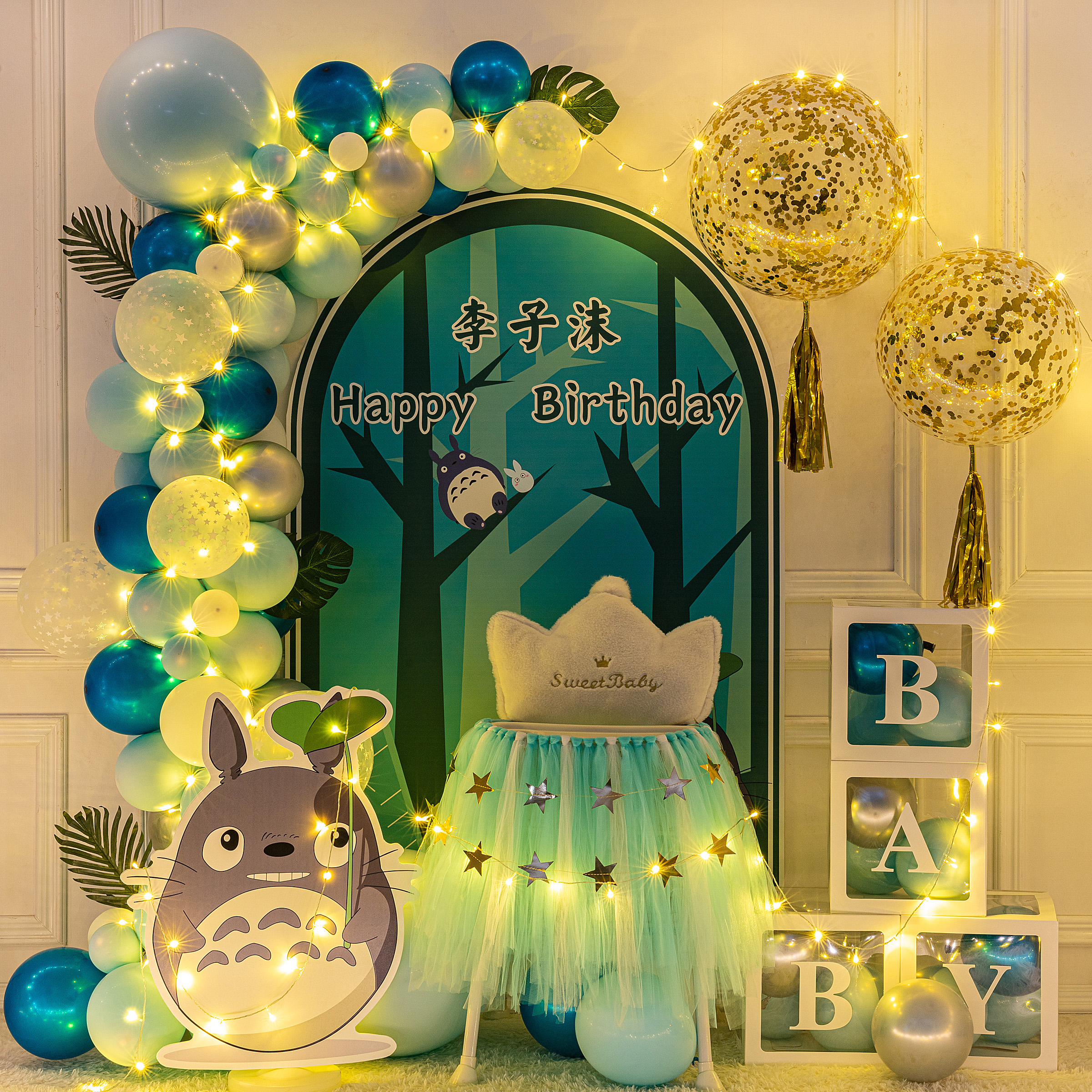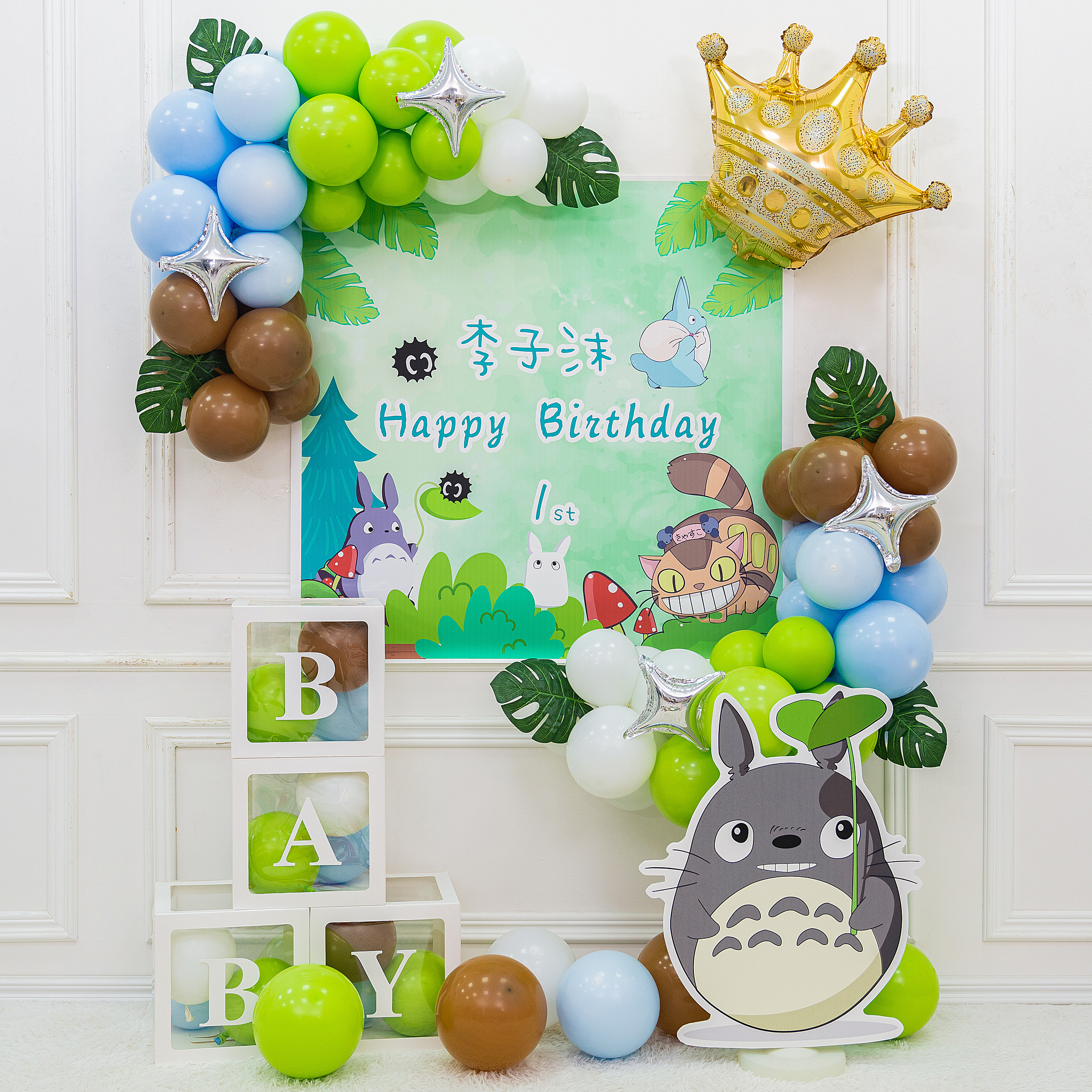 Boys and girls baby 1st birthday decoration green forest theme children's party background wall poster package 2