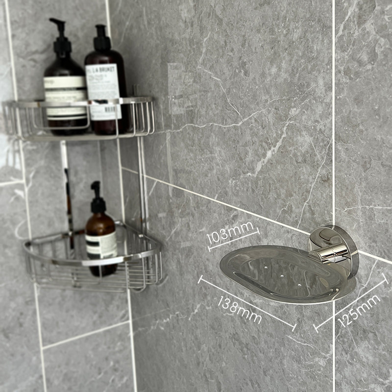 "Twilight" soap dish 304 stainless steel polished bright silver rust protection soap rack light lavish quality with drain